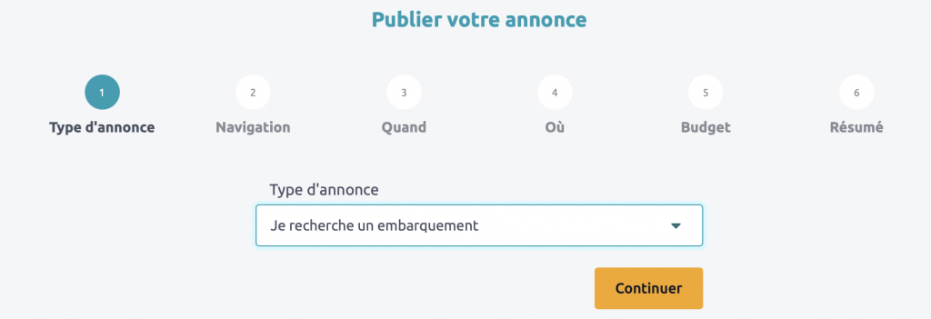 2. Deuxième conseil à suivre obligatoirement pour mettre toutes les chances de vos côtés : Publier une ou plusieurs annonces de type « demande d’embarquement ».