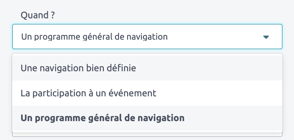 Si vous êtes disponible sur des saisons de navigation, choisissez « Programme général de navigation »