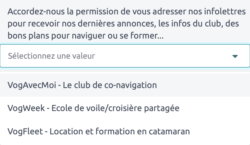 1°) Modifiez ce choix dans la rubrique « Mes paramètres« , et sélectionner la newsletter « VogAvecMoi, le club de co-navigation ». Si vous étiez préalablement désinscrit à celle ci, vous recevrez un e-mail dans les 12h00 qui vous demandera de confirmer votre inscription à celle-ci.