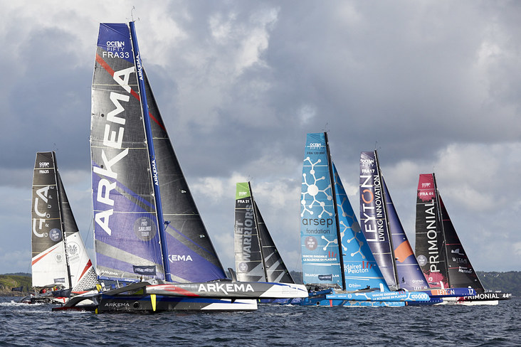- La classe OCEAN FIFTY (8 bateaux) : « petit » catamaran de 50 pieds (15 mètres), ce sont des karts ou des petites mobylettes trafiquées, qui permettent à des skippers talentueux et fougueux de traverser l’atlantique comme des funambules. Ce sont des modèles réduits des anciens trimarans 60 pieds ORMA.